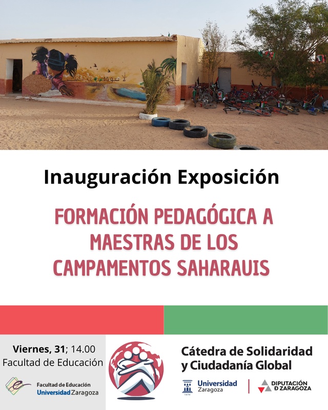 La Cátedra de Solidaridad y Ciudadanía Global inaugura hoy, 31 de octubre, a las 14:00, en la Facultad de Educación, la Exposición "Formación Pedagógica a las maestras de los Campamentos Saharauis".