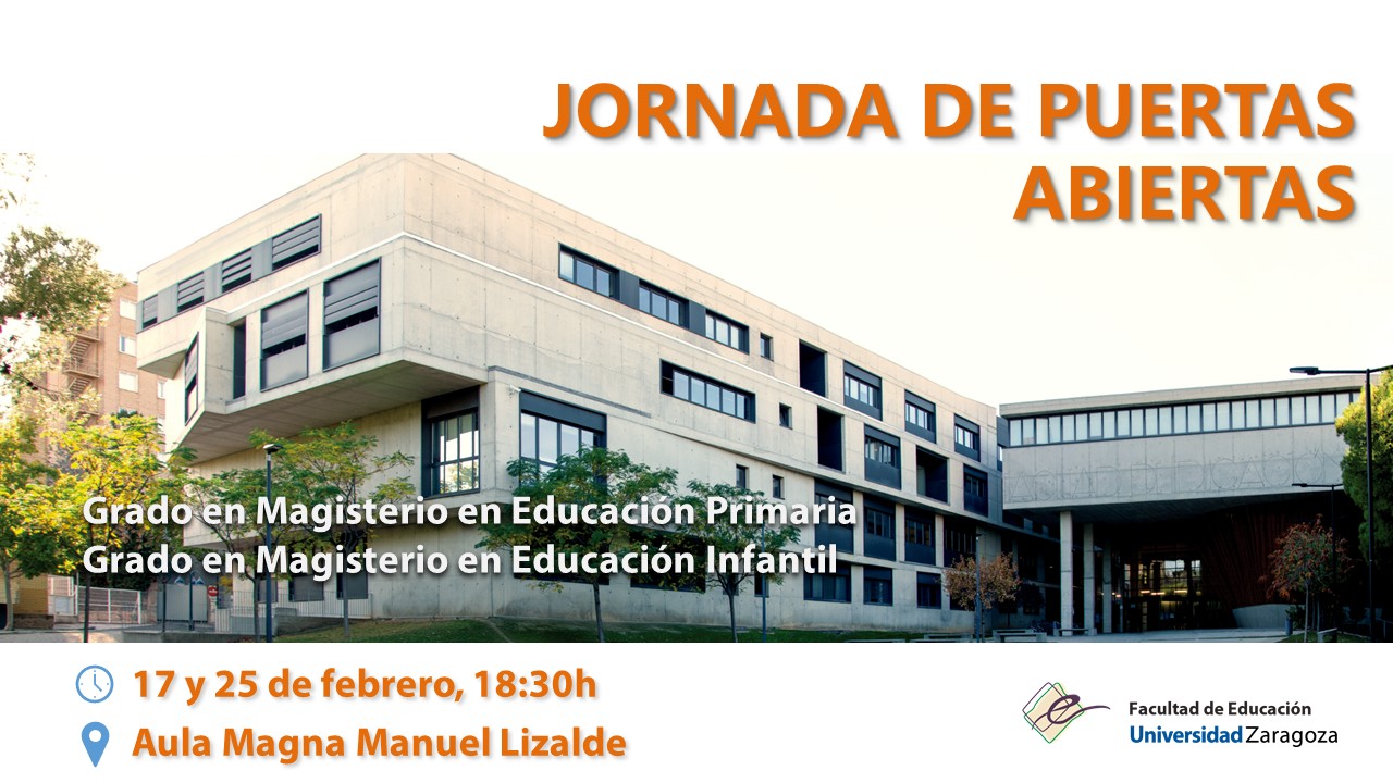 La Facultad de Educación de la Universidad de Zaragoza celebrará su Jornada de Puertas Abiertas en las fechas y el lugar que se detallan a continuación